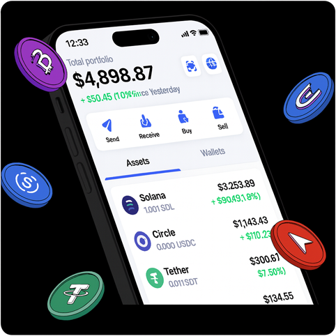 Manage Solana, USDT, USDC and more in one unified wallet.